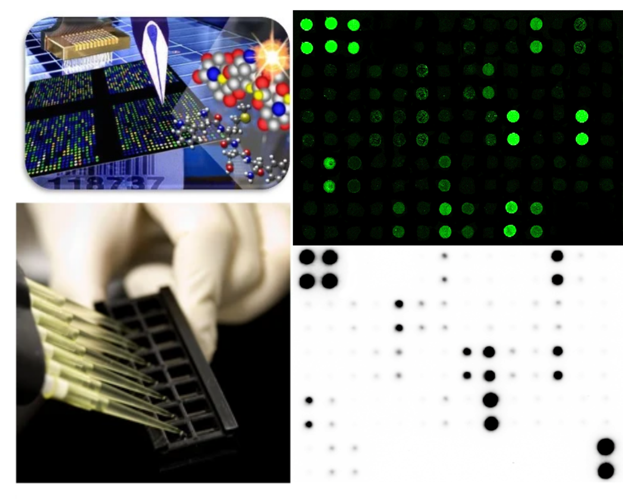 雙抗夾心:將所有待檢測因子的捕獲抗體按照一定順序包被在修飾后的載玻片或NC膜上,與樣本中對應(yīng)靶標(biāo)結(jié)合后,再結(jié)合檢測抗體,激發(fā)HRP底物或者是CY3的熒光,通過熒光強(qiáng)度進(jìn)行多因子的定量。