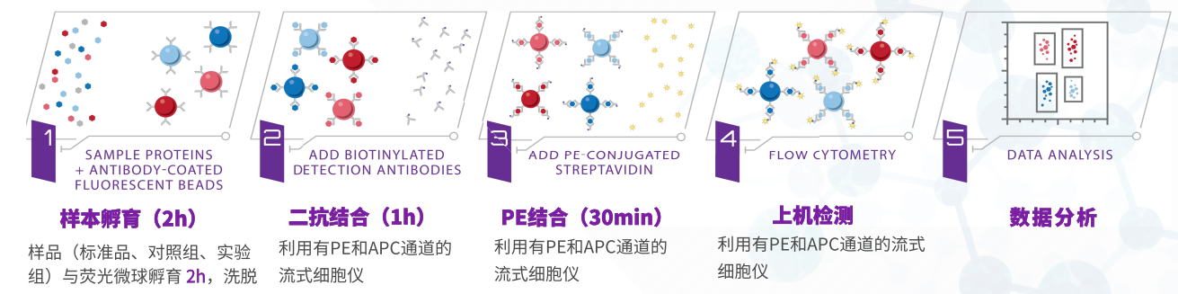 流式細(xì)胞儀:利用CBA技術(shù)的rayplex流式多因子利用含有PE及APC通道的流式細(xì)胞儀即可檢測。